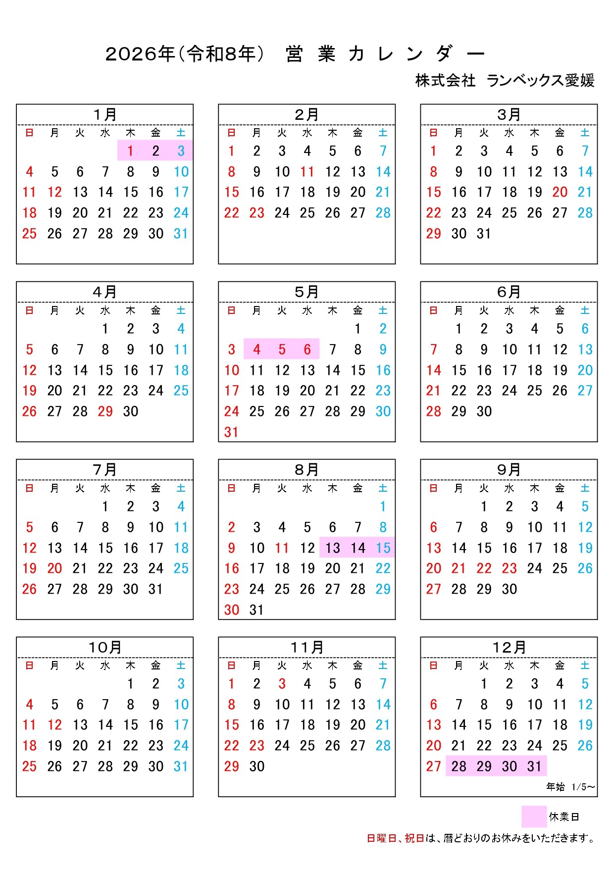 | 2025/07/16 | 2025年8月 営業日、休暇日のお知らせ |